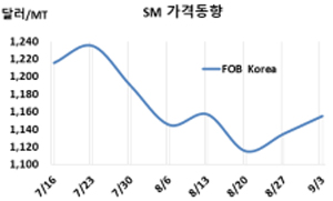표, 그래프: <SM 가격동향> <화학저널 2021/09/08> |