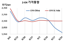 표, 그래프: <2-EH 가격동향> <화학저널 2021/09/30> |