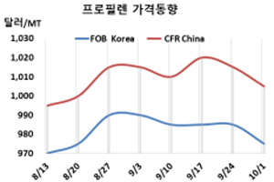 [석유화학] 프로필렌, 연휴 앞두고 약세 전환… | 2025-10-01 | ||