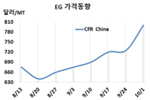 표, 그래프: <EG 가격동향> <화학저널 2021/10/07> |