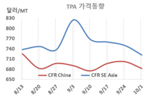 표, 그래프: <TPA 가격동향> <화학저널 2021/10/07> |