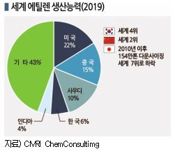 국내 석유화학산업은 2011년 일본을 역전한 후 꾸준히 신증설을 추진해 세계 4위 자리를 확보하고 있다.