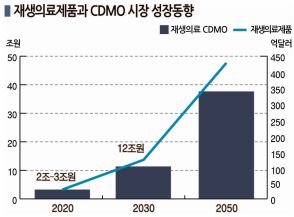 제약기업들이 임상시험에 투자하는 대신 제조를 외부에 위탁하는 사업모델을 갖추고 있어 글로벌 재생의료 CDMO 시장은 현재의 2조-3조원 수준에서 2030년에는 12조원으로 확대될 것으로 예상된다.