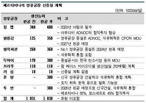 페르타미나는 신규 컴플렉스 건설을 통해 석유화학제품 생산능력을 2020년 기준 166만톤에서 2025년 이후 1220만톤으로 약 7배 확대할