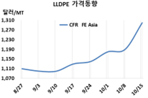 표, 그래프: <LLDPE 가격동향> <화학저널 2021/10/18> |