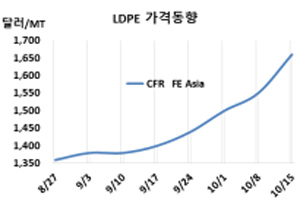표, 그래프: <LDPE 가격동향> <화학저널 2021/10/18> |