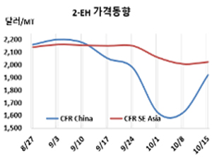 표, 그래프: <2-EH 가격동향> <화학저널 2021/10/20> |