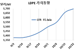 표, 그래프: <LDPE 가격동향> <화학저널 2021/10/25> |