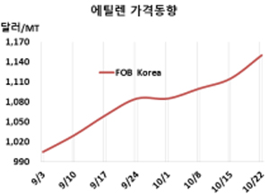 에틸렌(Ethylene)은 원료 초강세의 영향이 반영됐다.
