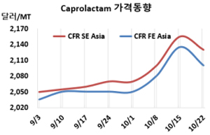 카프로락탐(Caprolactam)은 상승세가 꺾였다.