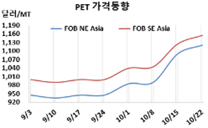 표, 그래프: <PET 가격동향> <화학저널 2021/10/28> |