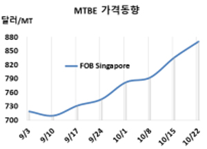 표, 그래프: <MTBE 가격동향> <화학저널 2021/10/29> |