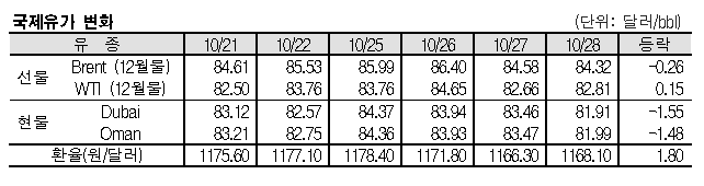 브렌트유, 84.32달러로 0.26달러 떨어져 … 두바이유는 81.91달러 형성