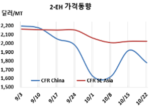 표, 그래프: <2-EH 가격동향> <화학저널 2021/10/29> |