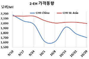 2-EH(Ethylhexanol)가 하락세가 계속되고 있다.