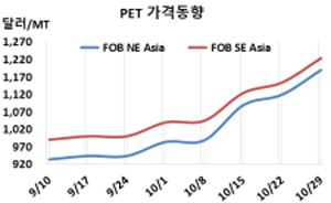 표, 그래프: <PET 가격동향> <화학저널 2021/11/04> |