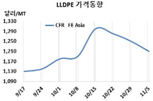 표, 그래프: <LLDPE 가격동향> <화학저널 2021/11/08> |