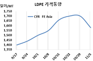 표, 그래프: <LDPE 가격동향> <화학저널 2021/11/08> |