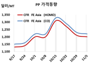 표, 그래프: <PP 가격동향> <화학저널 2021/11/09> |