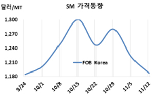 표, 그래프: <SM 가격동향> <화학저널 2021/11/17> |