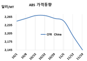 표, 그래프: <ABS 가격동향> <화학저널 2021/11/24> |
