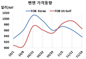 벤젠(Benzene)은 900달러대 초반으로 하락했다.
