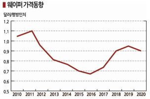 실리콘(Silicone) 웨이퍼는 장기공급을 위한 움직임이 활발해지고 있다. 표, 그래프: <웨이퍼 가격동향> <화학저널 2021년 11월 29일> |
