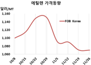 에틸렌(Ethylene)은 한국산은 하락대열을 이탈했다.