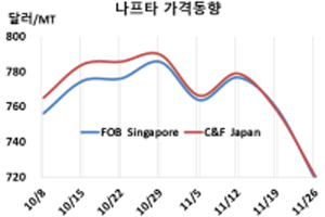 표, 그래프: <Naphtha 가격동향> <화학저널 2021/11/29> |