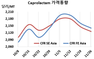 카프로락탐(Caprolactam)은 하락세가 지속되고 있다.