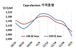 표, 그래프: <카프로락탐 가격동향> <화학저널 2021/12/09> |