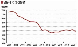 일본은 2020년 PS 생산량이 65만9000톤으로 20년 전에 비해 41.9% 급감한 것으로 나타났다.