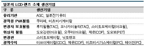 일본기업들은 LCD(Liquid Crystal Display) 패널과 함께 유리기판, 광학필름 수요가 동시 증가하면서 수혜를 누리고 있다.