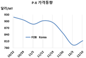 표, 그래프: <P-X 가격동향> <화학저널 2021/12/16> |