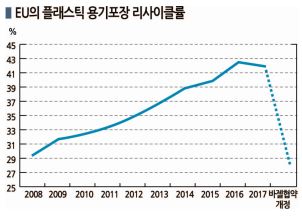 유럽은 플래스틱 포장용기 리사이클을 적극화하고 있으나 목표 달성이 어려울 것으로 우려된다.