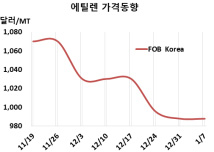 표, 그래프: <Ethylene 가격동향> <화학저널 2022/01/10> |