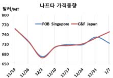 나프타(Naphtha)는 등락이 엇갈렸다.