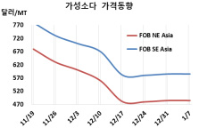 표, 그래프: <가성소다 가격동향> <화학저널 2022/01/14> |