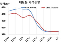 메탄올(Methanol)은 400달러가 무너진 채 새해를 출발했다.