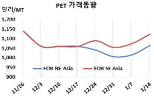 FOB NE Asia 1065달러로 50달러 올라 … 겨울철 비수기가 한계