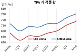 표, 그래프: <TPA 가격동향> <화학저널 2022/01/20> |
