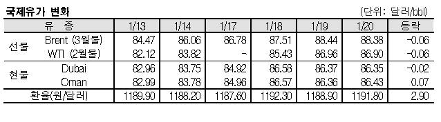 브렌트유, 88.38달러로 0.06달러 떨어져 … 두바이유 86.35달러