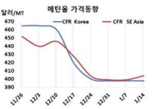 표, 그래프: <Methanol 가격동향> <화학저널 2022/01/21> |