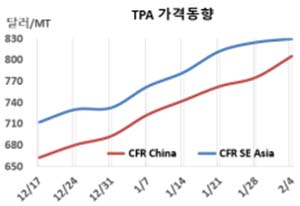 CFR China 805달러로 30달러 상승 … P-X 강세에 정기보수