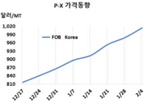 표, 그래프: <P-X 가격동향> <화학저널 2022/02/10> |