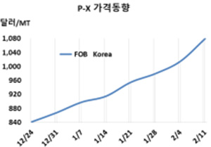 표, 그래프: <P-X 가격동향> <화학저널 2022/02/17> |