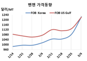 벤젠(Benzene)은 1200달러대 초반으로 대폭등했다.