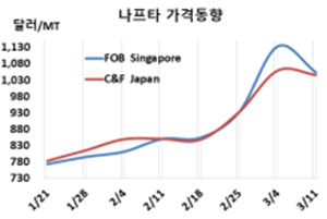 표, 그래프: <Naphtha 가격동향> <화학저널 2022/03/14> |