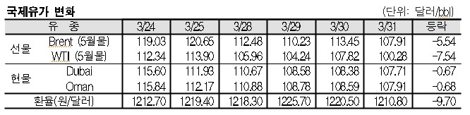 3월31일 국제유가는 미국의 전략 비축유 방출 발표 영향으로 하락했다.