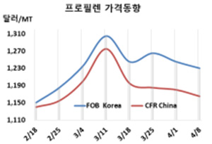 표, 그래프: <Propylene 가격동향> <화학저널 2022/04/12> |